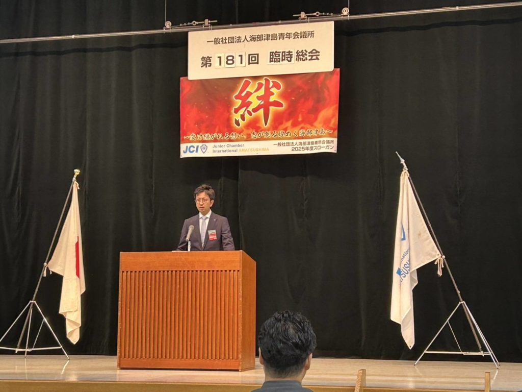 第181回臨時総会が開催されました!by 管理者に 未分類on 投稿日: 2025年8月27日 8月26日(火)津島市文化会館にて、第181回臨時総会を開催しました。 本総会では2026年度の役員選出議案が上程され、無事可決承認されました。 2026年度の理事長予定者である加藤大晴君の挨拶と役員紹介も行われました。 2025年度の活動も残り期間が少なくなってきましたが、地域をより良くするために我われは最終最後まで邁進して参ります。